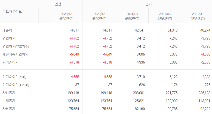 삼성전자와는 업종이 다르기 때문에 실적을 비교하기에 모순이 있지만 삼성전자의 경우 2022년 예상 매출액이 312.8조이고 영업이익은 58.3조 시가총액은 438.7조이다.