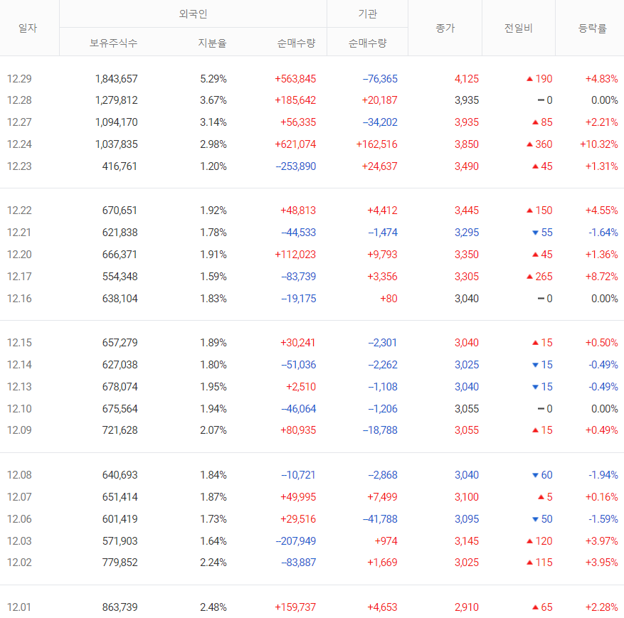 ㄱ) 12월 1일부터 현재까지 개인 15.1억 원 매도, 외국인 6.9억 원 매수, 기관 1.1억 원 매도 중이다.