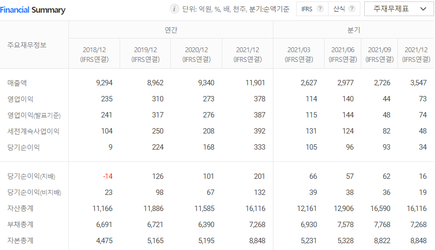 실적이 증가하는 추세이고 지주사답게 투자 지표도 안정적이다. 수급은 개인들이 몰리고 있으며 차트는 전고점을 향해 강한 거래량을 보이면서 상승하는 좋은 흐름을 보이고 있다.