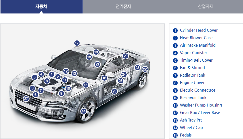 ㄷ) 동사는 완성차 업체와 신차 개발에서부터 대체소재 개발에 직접 참여하고 있으며 고기능성 폴리머 소재를 성형업체게 납품하고 있어 추가 수요가 예상된다.