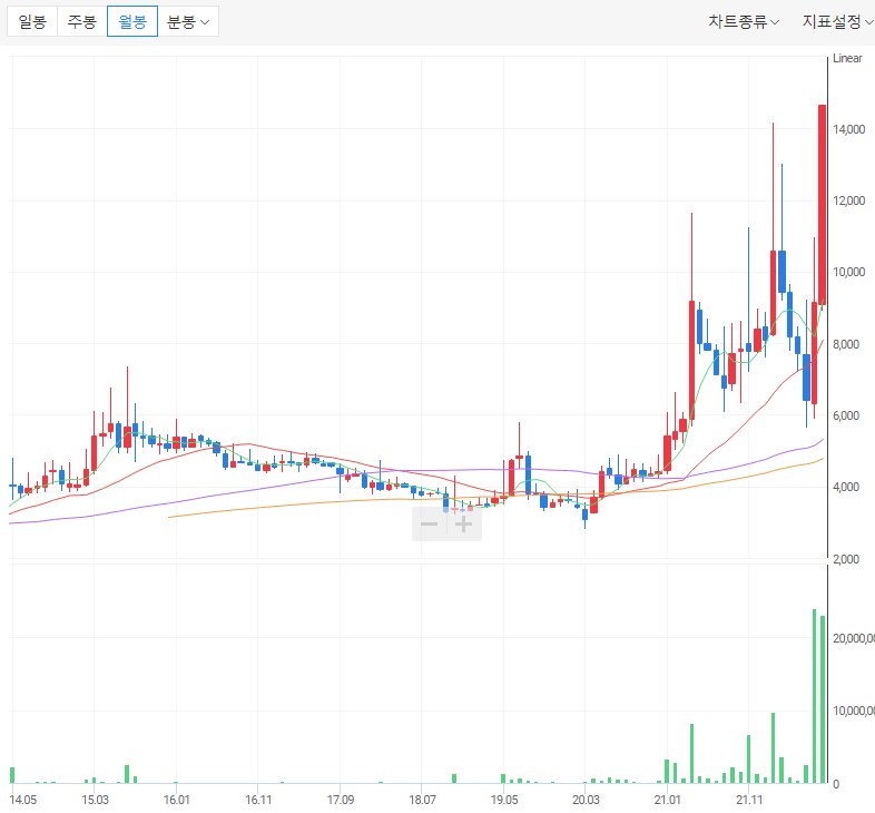 ㄴ) 월봉 차트에서 신고가를 기록하고 있는 만큼 지금은 상승세이다.