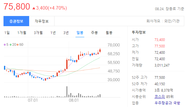 - 향후 민간항공기 시장의 본격 참여를 통해 항공부문 매출의 비약적인 확대를 도모하고 있다.