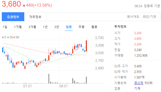 - 동사는 2003년 3월 20일 공장기계제조업을 영위할 목적으로 설립되었다.