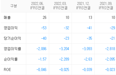 - 2022년 3월 전년 동기 대비 큰 폭의 매출 성장이 있었지만 판관비와 인건비 및 복리후생비의 증가로 인하여 영업손실이 소폭 증가하였다.