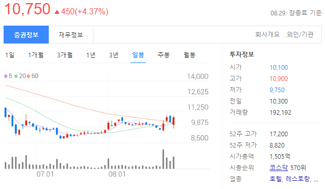 - 여행알선 서비스 부문, 호텔 위탁운영 및 대행 부문, 부동산 투자 등 3개 분야로 구분되어 있으며, 내국인 및 외국인들을 대상으로 국내외 기획여행상품과 항공권 등을 판매하고 있으며, 이에 관련되는 일련의 서비스를 제공하는 사업을 영위하였다.