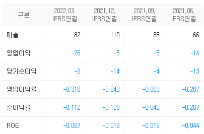 - 매출액이 감소함에 따라 영업손실도 증가함. 전기 대비 법인세 비용이 감소하였으나 당기순손실은 적자 상태를 유지하고 있다.