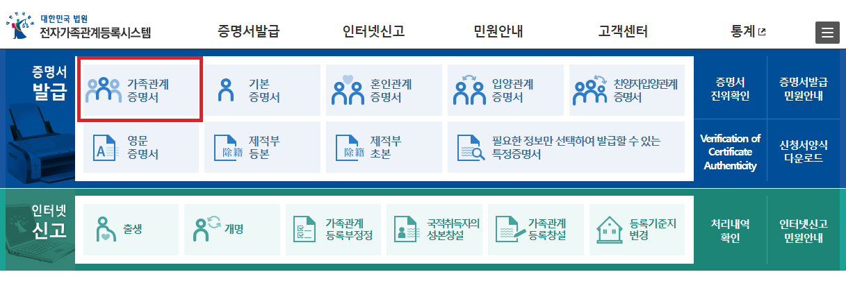 가족관계 증명서 인터넷 발급 방법에 대해서 알아보자.
