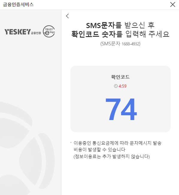 4. 공동인증서 또는 금융인증서 중에서 한가지를 인증한다.