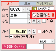삼성전자나 현대차 같은 우량한 주식들은 현금 20%만 있어도 신용 매수가 가능하지만 재무구조가 불건전한 종목들은 현금 100%가 있어야 매수가 가능하다.