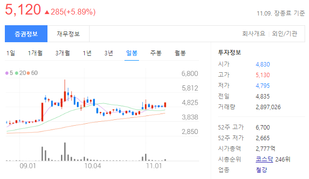 - 매출은 냉연강판 38.82%, 칼라강판 27.11% 등으로 이루어져 있다.