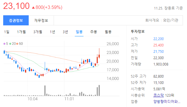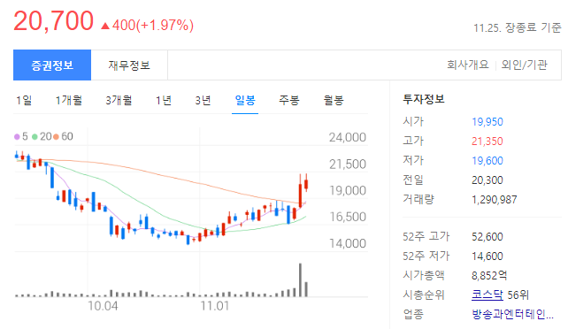 - 2019년 10월 유가증권시장으로 이전 상장함. 2009년 4월 물적분할 후 2014년 11월 매각하였으며, 2016년 12월 매거진 사업부문을 영업 양도하였다.