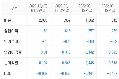 - 사회적 거리두기 해제로 매출액이 크게 늘면서 영업손실도 감소하고 있지만 법인세비용 증가로 당기순손실이 늘어나고 있다.