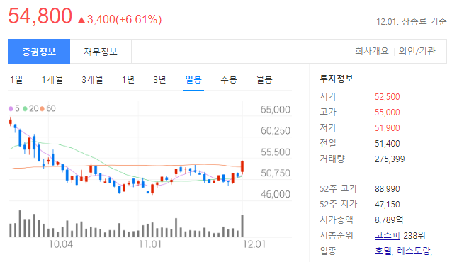 - 2005년 7월 26일 자로 코스닥시장에 상장돼 매매 개시되었으며, 여행알선 서비스 부문, 호텔 위탁운영 및 대행 부문, 부동산 투자 등 3개 분야로 구분된다.
