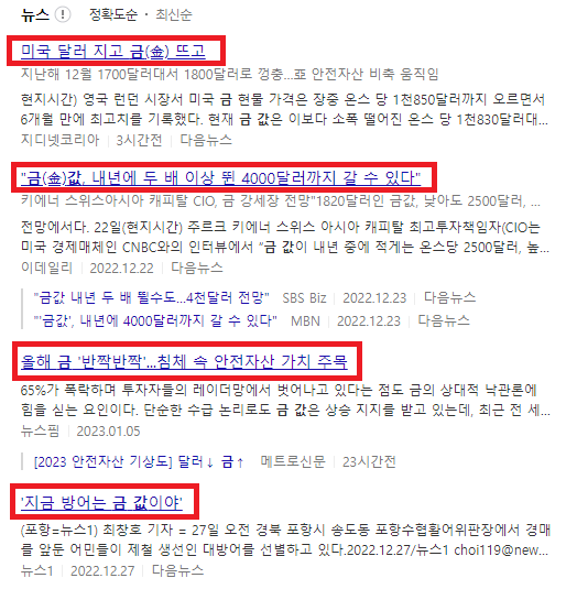 안전자산인 금 가격이 상승한다는 뉴스를 최근에 많이 볼 수 있다.