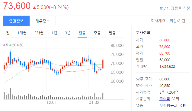 - 매출은 방산사업 47%, 항공엔진 24.7%, 시큐리티(CCTV) 18.7% 등으로 이루어져 있다.