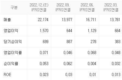 - 매출원가의 급등으로 인하여 매출액 증가에도 불가하고 영업이익 및 당기순이익은 감소하고 있다.