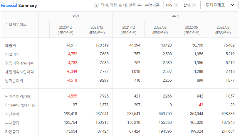 ㄷ) 적자가 지속되다가 상장한 2021년부터는 흑자로 턴어라운되었다.