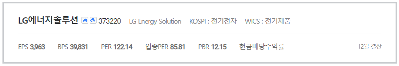 PER 122, PBR 12.15 미래의 가치가 현재 반영되어 높게 평가되었다.