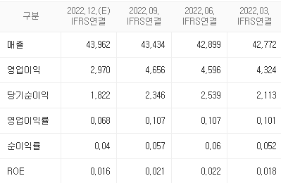 - 비교적 높은 매출액 성장을 보였으나 원가율 상승이 가팔랐고, 판관비 등 비용 증가로 영업손실을 보였으나 순손익은 흑자기조를 유지하고 있다.
