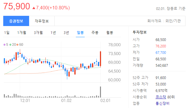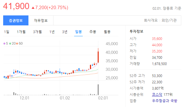 이와 관련하여 위성통신 관련주가 상승하는 흐름을 보였다.