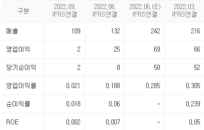 - 당기순이익 역시 크게 감소하였음. 동사는 메타버스 시장 진출을 위하여 (주)칼리버스 발행주식 100%를 120억에 인수하였고 70억을 추가 출자하였다.
