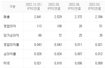 - 매출은 전년 동기 대비 소폭 증가했으나, 판관비와 인건비 및 복리후생비가 크게 늘면서 영업이익이 대폭 감소하였다.