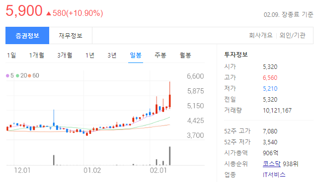 하지만, 구글에서도 인공지능 채팅봇 바드의 오답 논란에 구글의 모기업인 알파벳은 7% 넘게 급락하자 국내 AI 분야 관련종목들도 급락하는 모습이다.