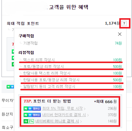 이러한 적립 혜택은 네이버 쇼핑몰마다 다르게 책정되어 있으며 네이버 스마트스토어에서 구매하면 기본 적립 혜택을 받을 수 있다.