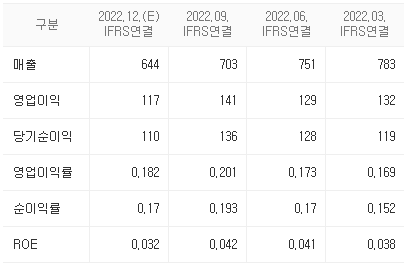 - 매출이 소폭 감소함과 동시에 PMDA, DMF 등의 원재료비 인상에 따른 원가율 상승과 판관비 증가의 영향으로 영업이익이 감소하고 있다.