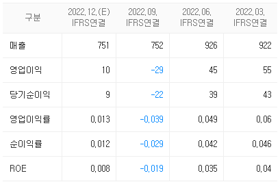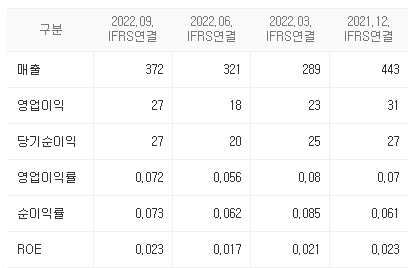 - 전체적으로 매출액이 감소하면서 영업이익 및 당기순이익 또한 감소하였다.
