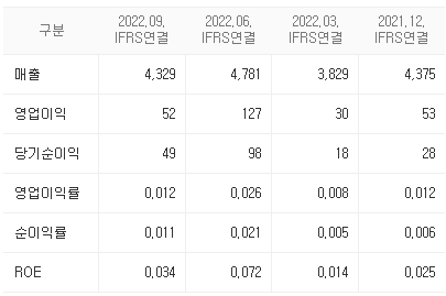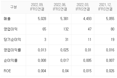 - 전년 동기 대비 IT사업 부문을 제외하고 모두 매출액이 감소함. 이에 따라 전체 매출과 영업이익, 당기순이익이 악화되고 있다.