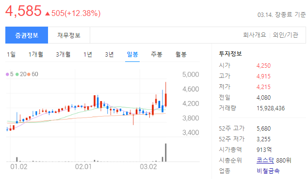 - 엘컴텍과 비승한 차트이다. 상승 후 수렴하고 다시 상승하는 분위기이다.
