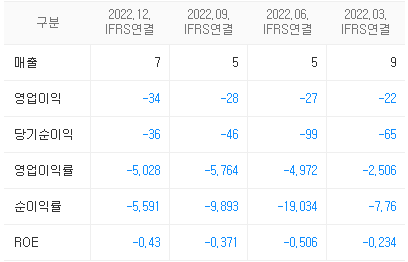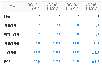 - 판관비, 인건비, 이자비용 등이 상승하여 영업이익이 감소하고 있고 적자를 기록 중이다.