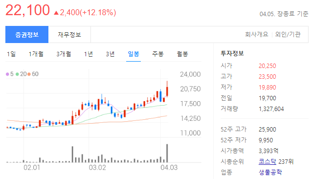코로나19에 대한 질병으로부터 벗어난 지금은 그동안 눌려서 하락하던 암 관련된 주식들이 상승하는 모습을 보이고 있다.
