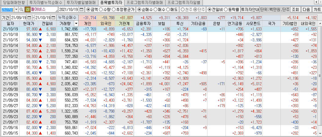 ㄱ) 기관과 연기금의 매수세가 심상치 않다.