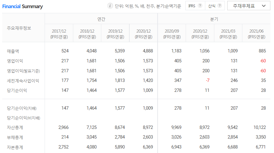 ㄱ) 2021년 6월 전년 동기 대비 연결기준 매출액은 28.5% 감소, 영업이익은 92.7% 감소, 당기순이익은 67.3% 감소하고 있다.